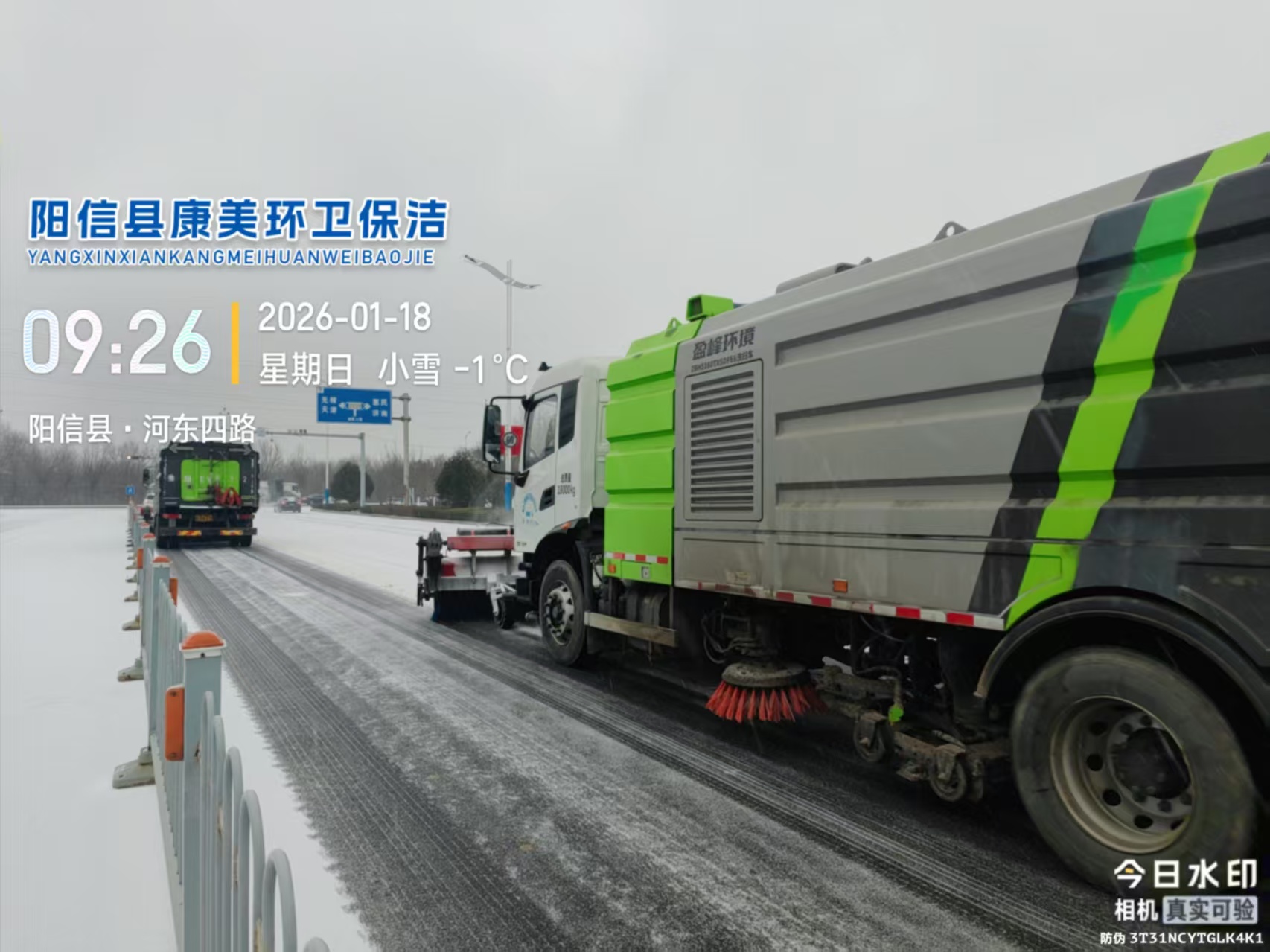 山东商报·速豹新闻网 通讯员 翟成新1月18日早,一场冰雪如约而至,阳信执法局和康美保洁公司闻雪而动,以雪为令,出动9个雪滚,6个雪铲